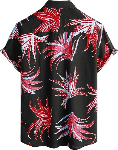 VATPAVE Mens Hawaiian Floral Shirts Cotton Linen Casual Button Down Short Sleeve Beach Shirts