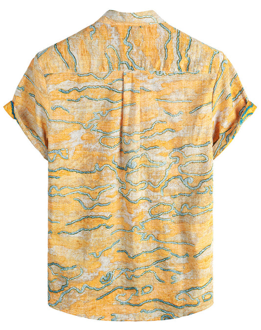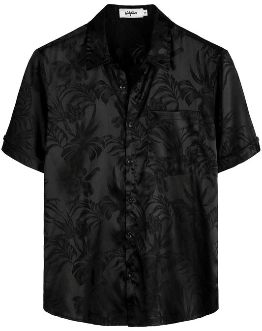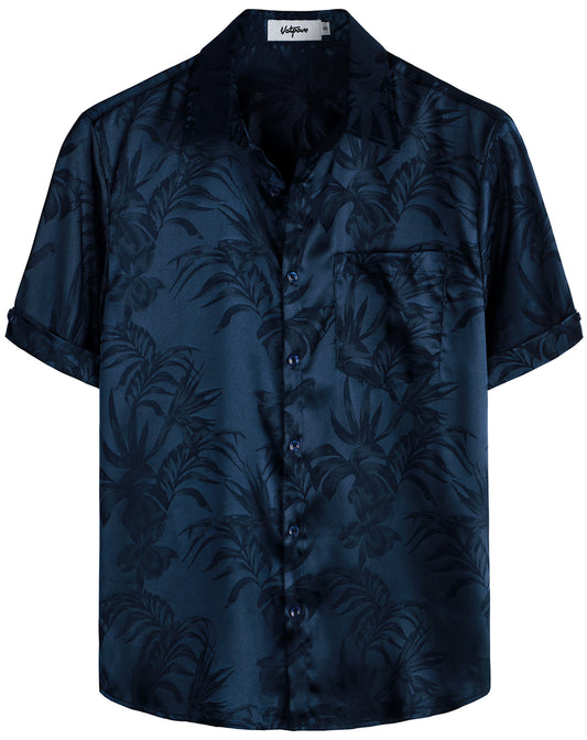 VATPAVE Mens Hawaiian Jacquard Regular Fit Shirts Casual Button Down Short Sleeve Summer Tops with Pocket