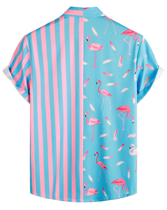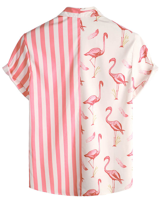 VATPAVE Mens Hawaiian Flamingo Shirts Casual Short Sleeve Button Down Shirt Summer Shirts